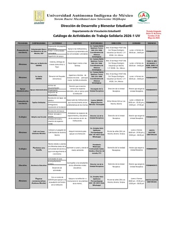 Estas actividades permiten aplicar los contenidos de las asignaturas del programa educativo en contextos reales de la comunidad.